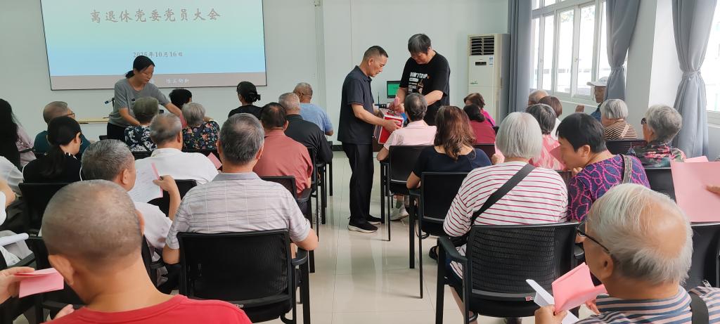 近日,离退休党委党员大会在离退处212教室顺利召开。离退休党员代表参加会议,会议由离退休党委书记伍飞军主持。