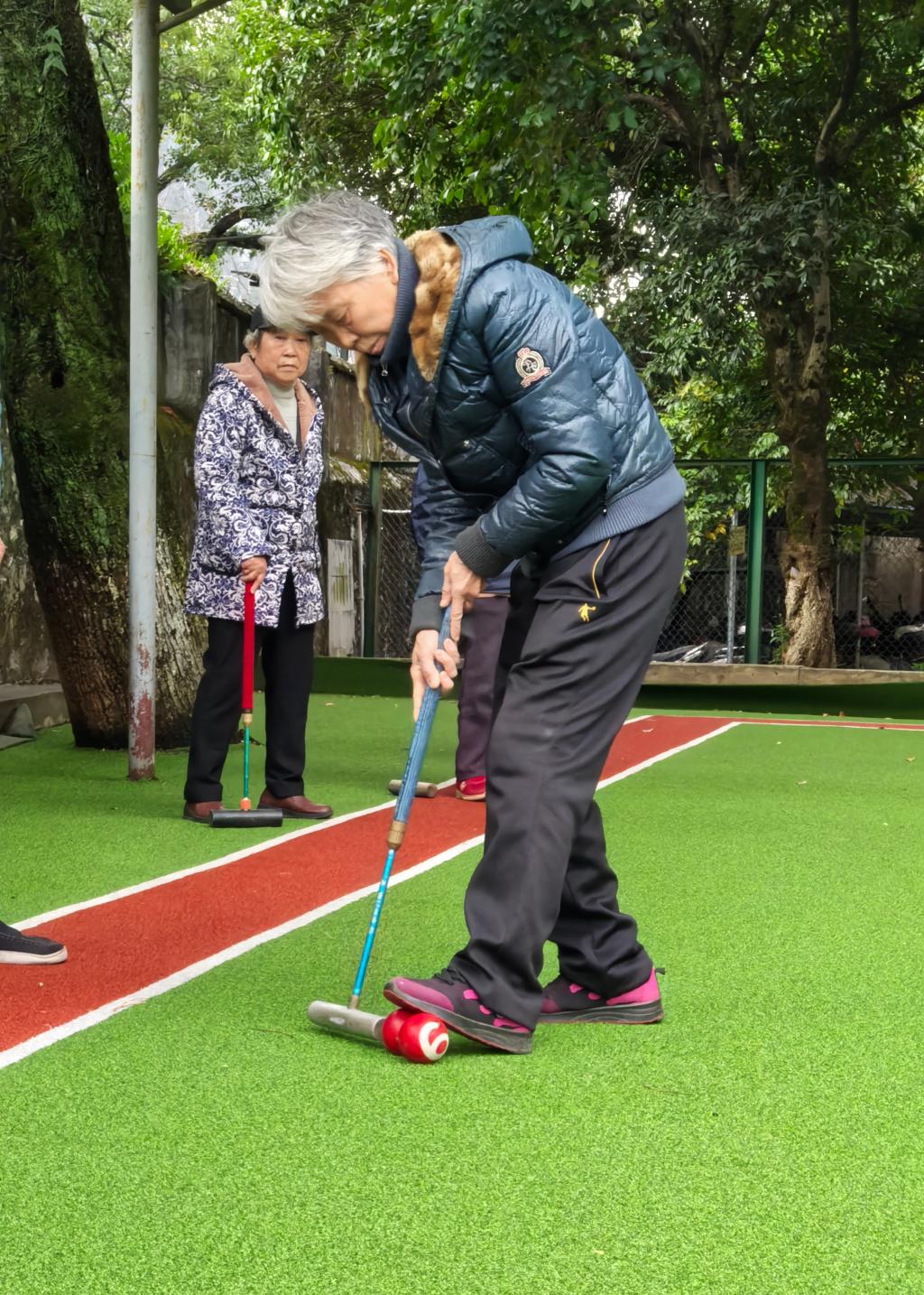 门球作为一项集健身性、趣味性、竞技性于一体的运动,深受老年人喜爱。比赛现场,选手们身着轻便服装,手持球槌,全神贯注地瞄准、击球、闪击,动作娴熟而稳健。场上既有紧张激烈的对抗,也有相互鼓励的温情,充分体现了“友谊第一、比赛第二”的体育精神。
