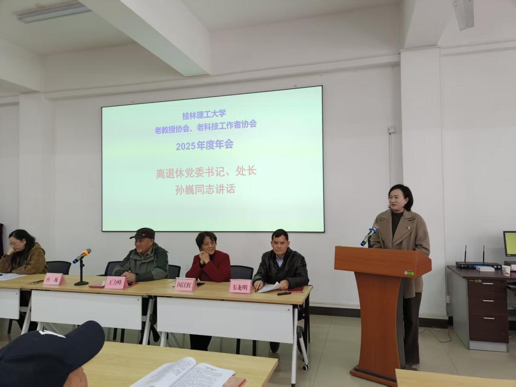1月9日上午,我校“两老协会”(桂林理工大学老教授协会和老科技工作者协会)2025年度年会在离退处212会议室隆重召开。协会理事和百余名两老协会会员齐聚一堂,共话发展、喜迎新春。离退休党委书记、离退处处长孙巍出席年会,会议由“两老协会”副会长韦龙明主持。