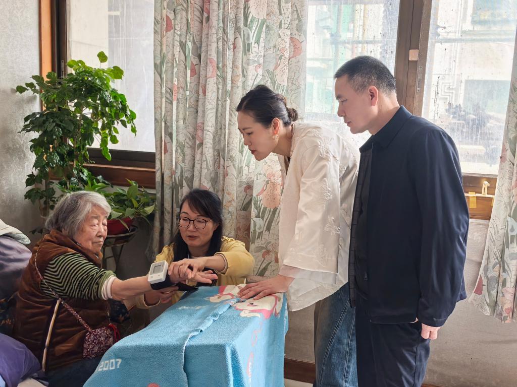每到一户,走访小组成员与老同志促膝交谈,细致了解其日常生活起居、身体状况及实际困难,叮嘱他们保重身体、保持乐观心态。校医院医护人员携带血压计、血糖仪等便携医疗设备,为老同志测量血压、血糖,进行心肺听诊等基础健康检查,详细询问其用药情况与既往病史,并针对常见老年病、慢性病提供专业的健康指导与用药建议。同时,医护人员还向老同志普及春季流行病预防、合理膳食、科学运动等健康知识,进一步提升大家的自我保健意识。老同志们对学校的关心关怀表示由衷感谢。