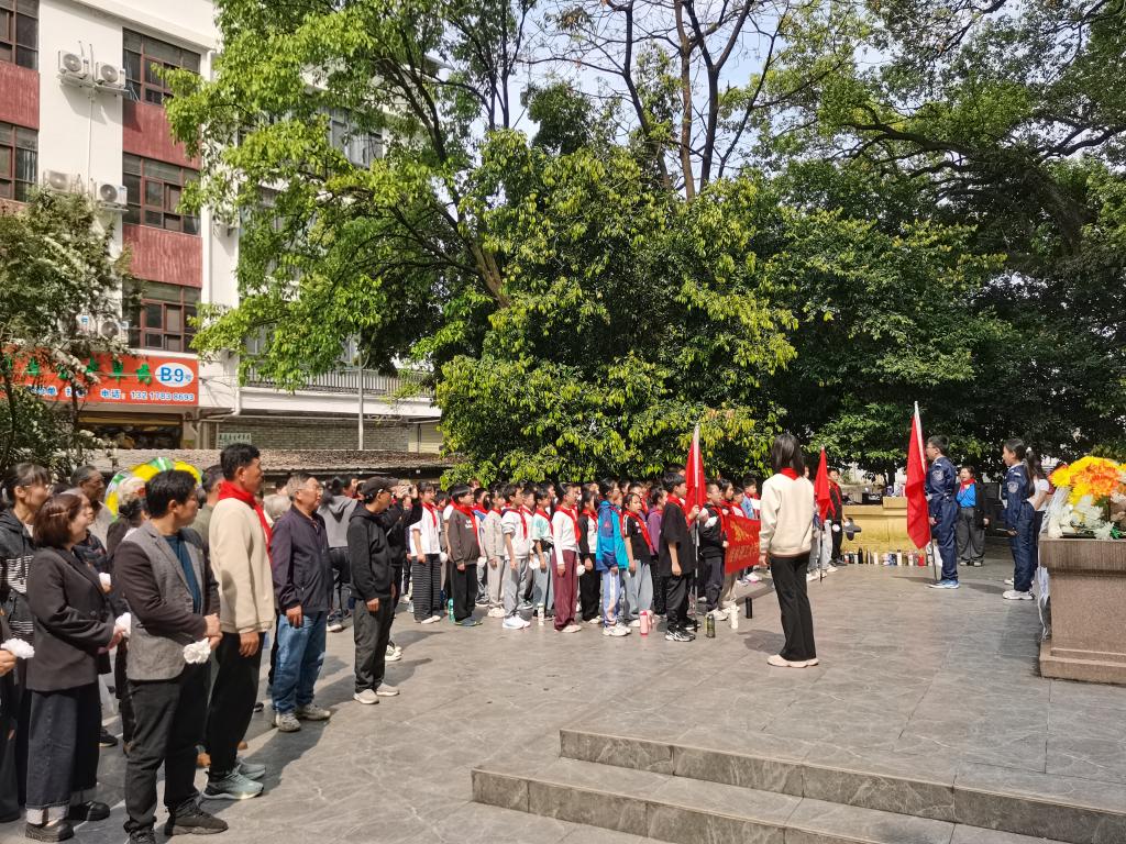 在离退休党员代表的见证下,全体少先队员高举右拳,高声呼号“时刻准备着”,嘹亮的呼号声凝聚着红领巾传承红色基因、续写时代华章的坚定信念。随后,离退休党员代表与全体师生依次走向烈士墓,郑重敬献小白花,低头默哀,以此表达对革命先烈的深切哀思与崇高敬仰。