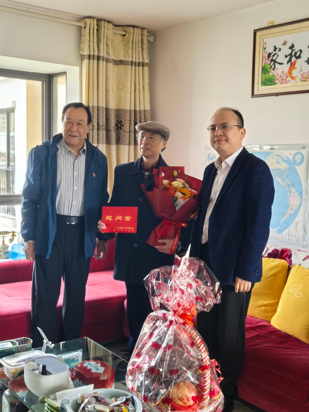 在周述忠老师家中,校领导与他亲切交谈,关切询问健康状况和生活情况,叮嘱保重身体,并听取其对关工委工作的意见建议,肯定周老师扎根一线数十载助力青少年成长的贡献。校领导表示,老同志是学校的宝贵财富,衷心希望周老师继续发挥“传帮带”作用,为学校高质量发展注入更多智慧力量。周述忠老师感谢学校的关心与重视,表示将继续坚守初心,围绕中心服务大局,用实际行动践行使命担当。